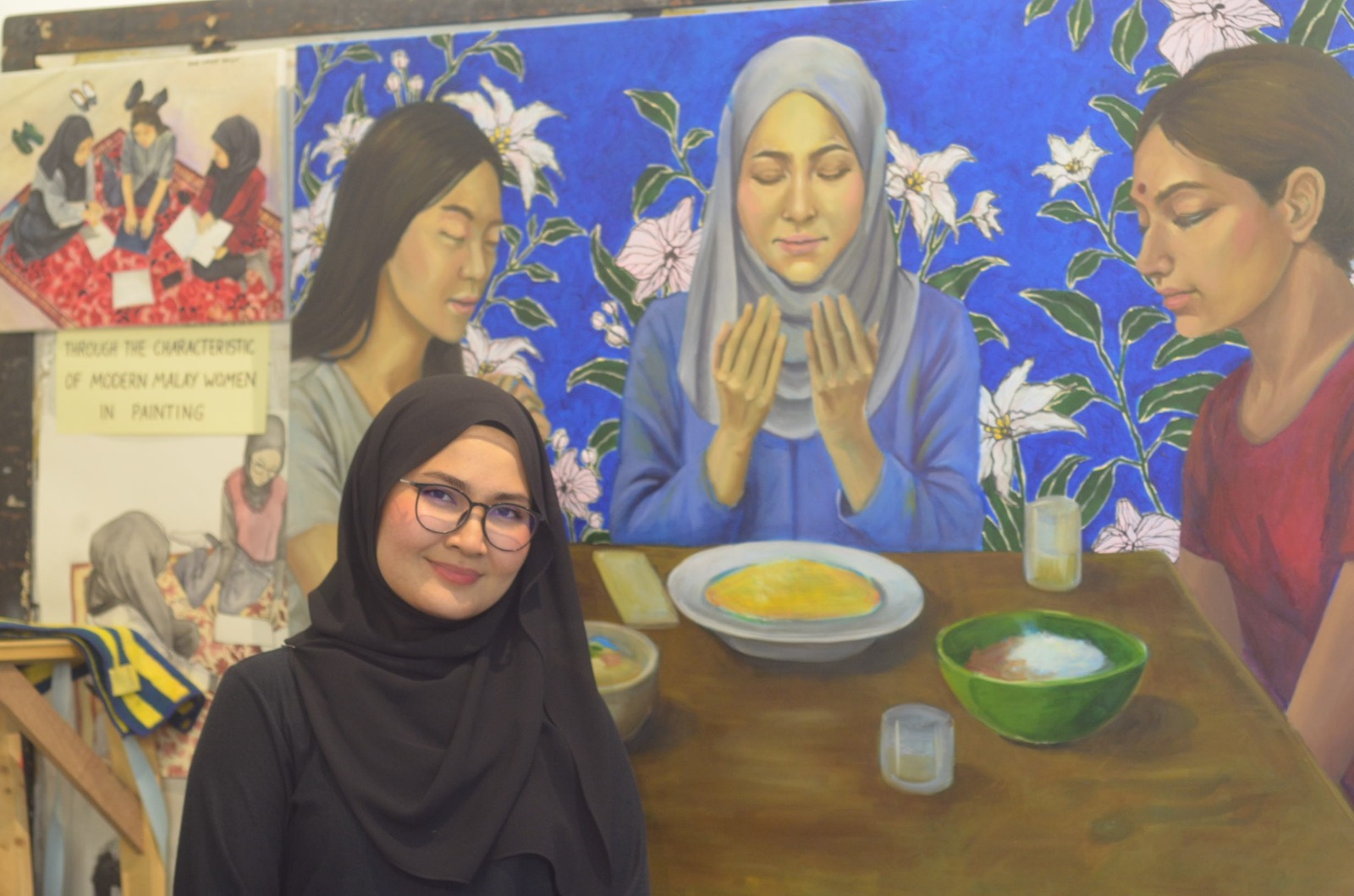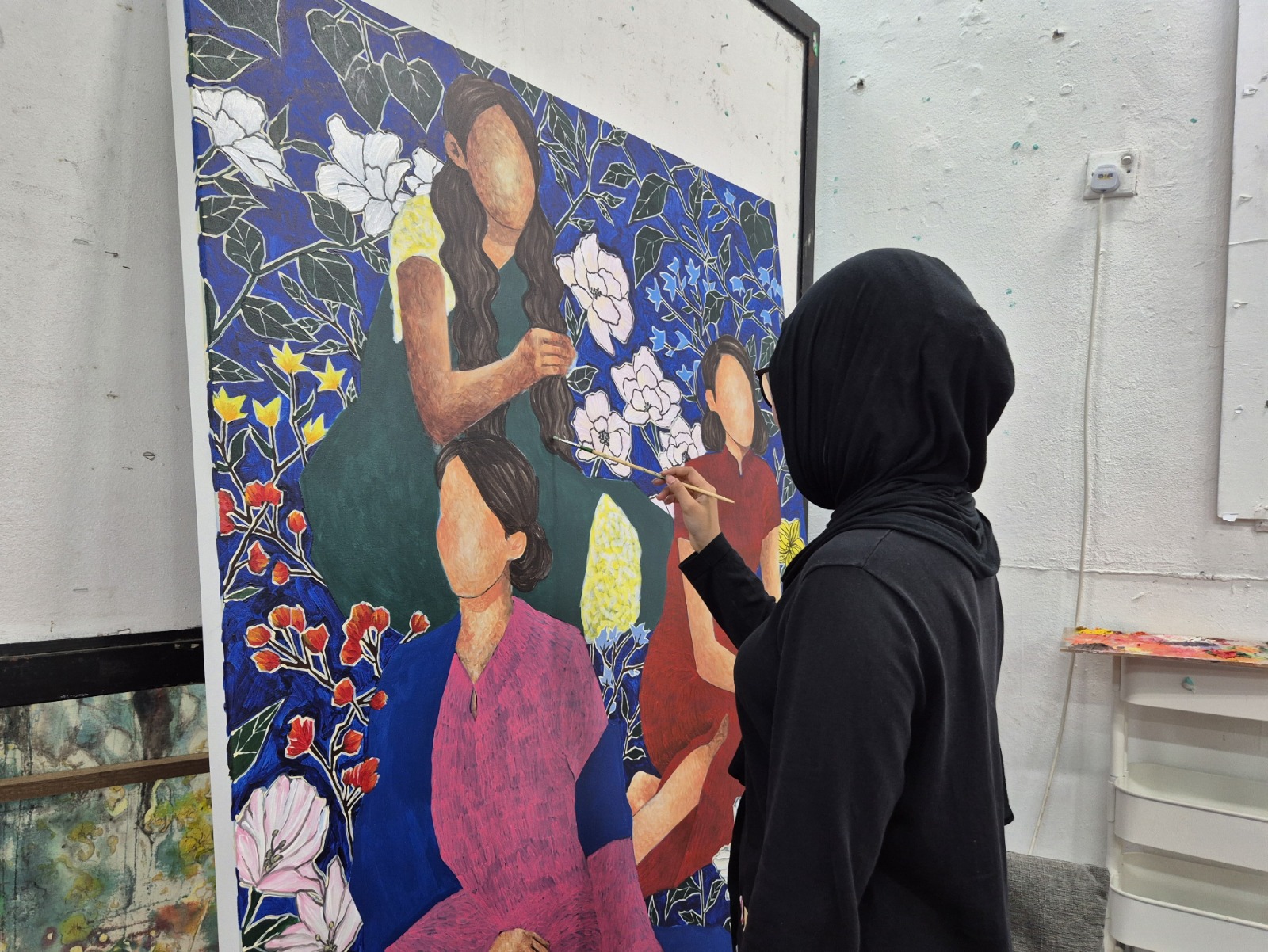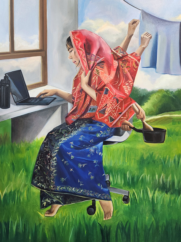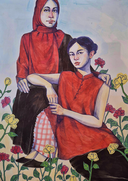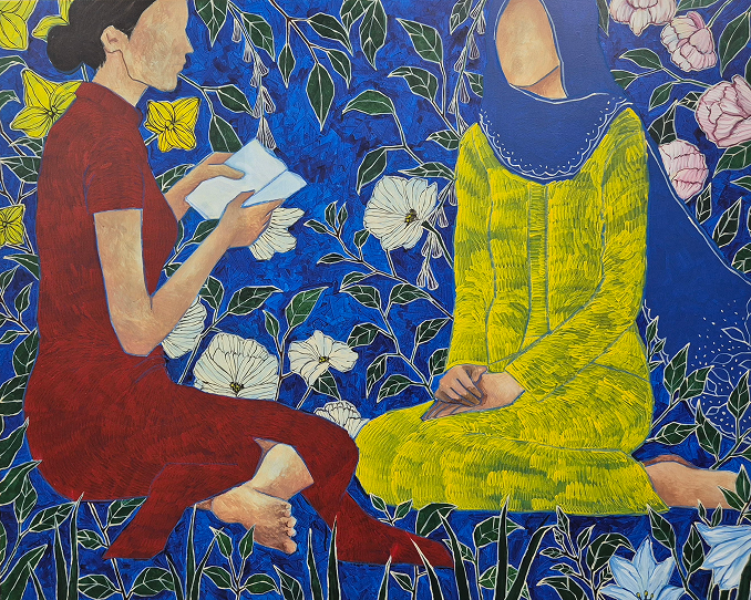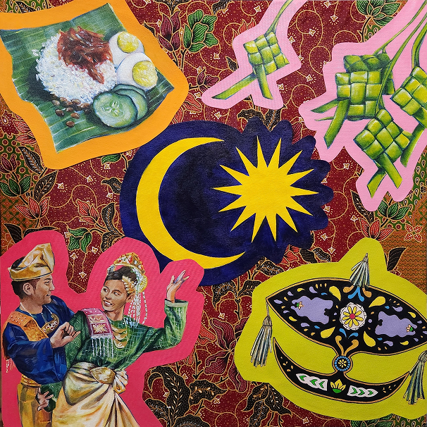 My name is Miza Firzana Alya Binti Azhar. Born in 2002, Kuala Lumpur. I started my creative career in diploma at UiTM Seri Iskandar. Continued my degree at UiTM Shah Alam in Fine Art, majoring in Painting. My work mainly evolves on themes regarding female empowerment, which are frequently examined through carefully chosen symbols that stand for women's complexity and aesthetic. Her main inspiration mainly came from both personal reflections, observation and larger societal settings.
